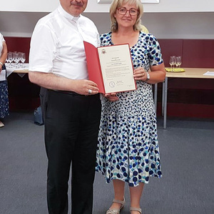 Sr. Maria Leopold hat diesen Ausbildungskurs mit sechs Modulen gemacht und ein Praktikum absolviert. Sie wurde am Freitag, den 14. Juni vom Bischof für die Pfarre gesendet und am Sonntag, den 16. Juni von Pfarrer Karner der Pfarrbevölkerung vorgestellt. Die Verantwortlichen der Diözese wünschen, dass die Begräbnisleiter ein liturgisches Kleid – eine weiße Albe – tragen.