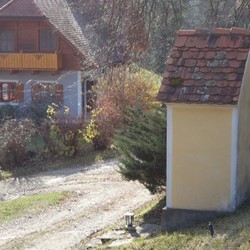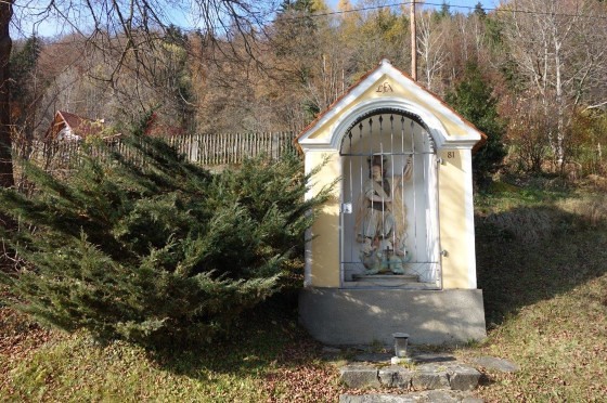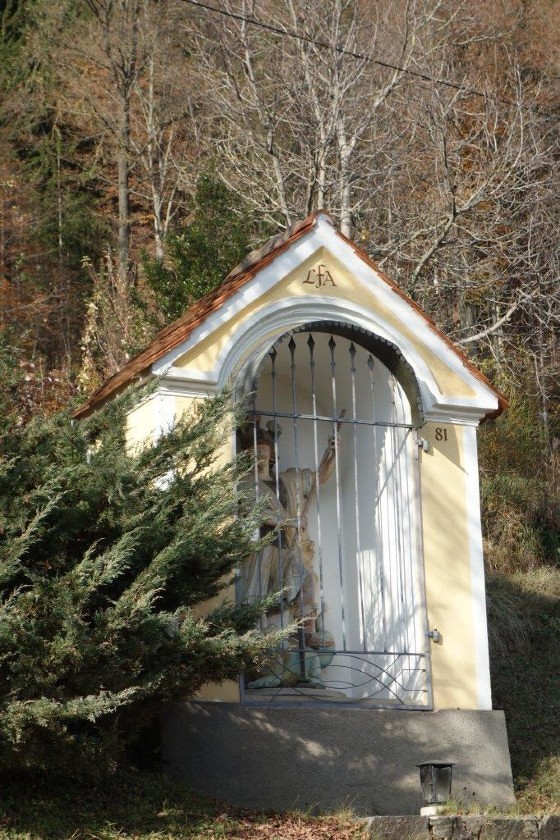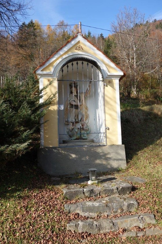 Am Dorfeingang des alten Kirchweges aus der Gams nach Adriach steht auf dem Anwesen der Familie Fassl vulgo Hacker ein schöner Hausbildstock.