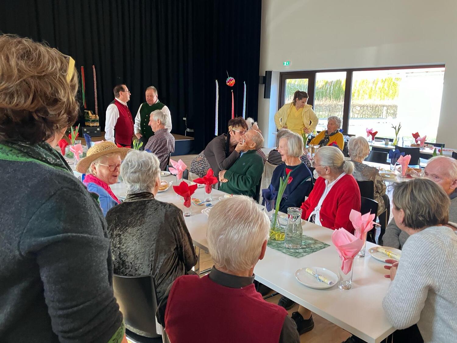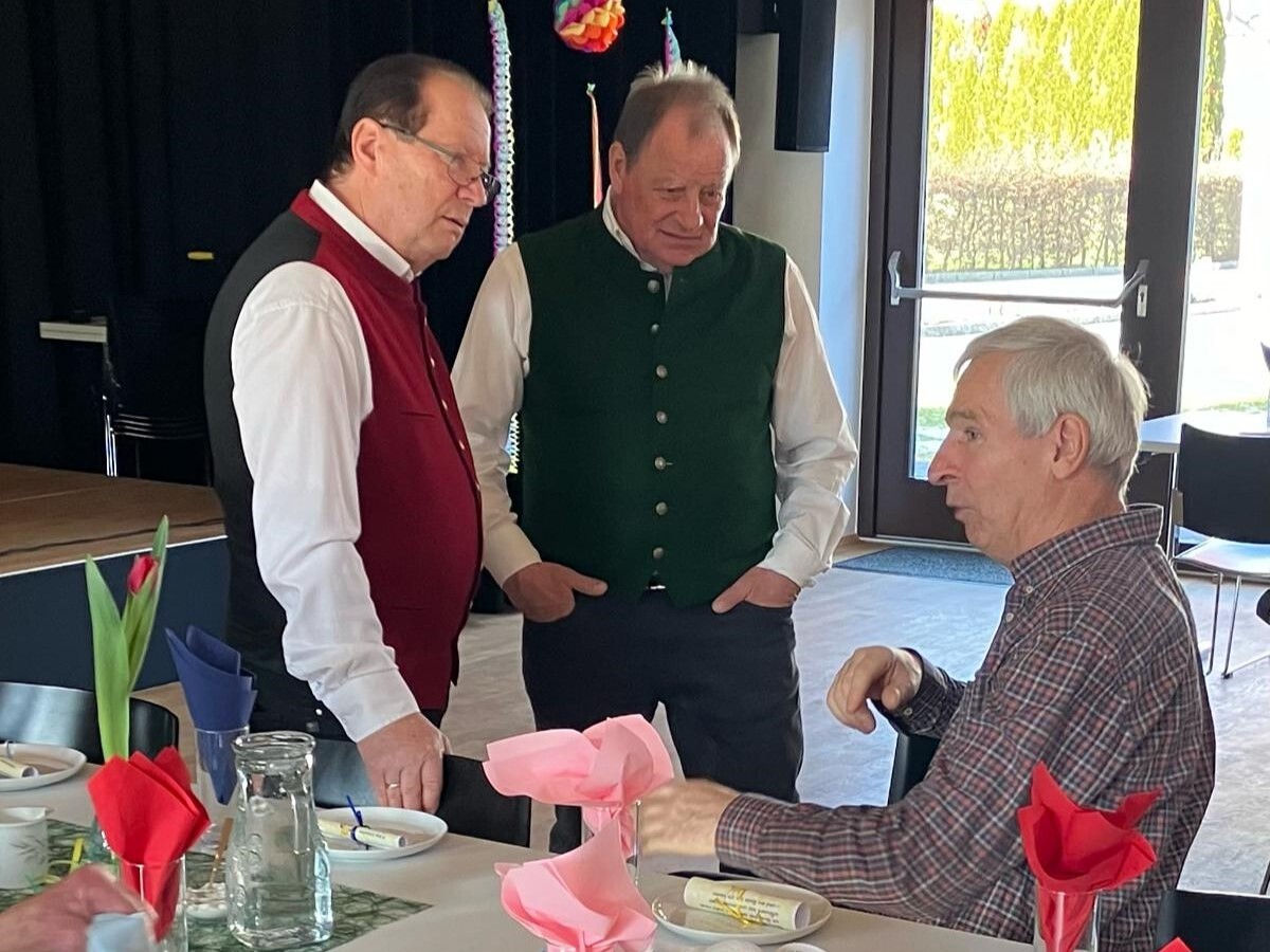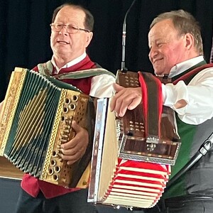 Der Höhepunkt des Nachmittags waren Mori Hans und Tschernko Karl. Die zwei Musikanten unterhielten die Feiernden mit ihrer Musik und Witzeinlagen köstlich. Bei Krapfen, Strauben, Kaffee und Wein wurde viel geplaudert, gesungen und gelacht.