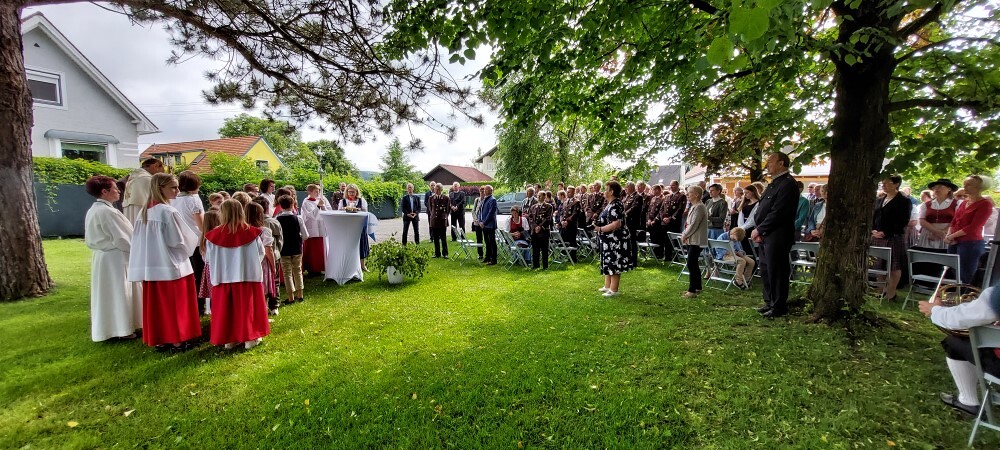 Gemeinsam mit der Pfarre Tobelbad feierten wir das Fronleichnamsfest beim Dorfkreuz in Lieboch. Der auferstandene Herr Jesus, der in der Gestalt des Brotes gegenwärtig ist, steht im Mittelpunkt.