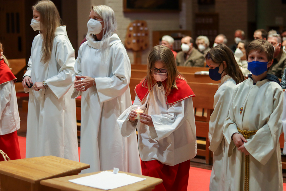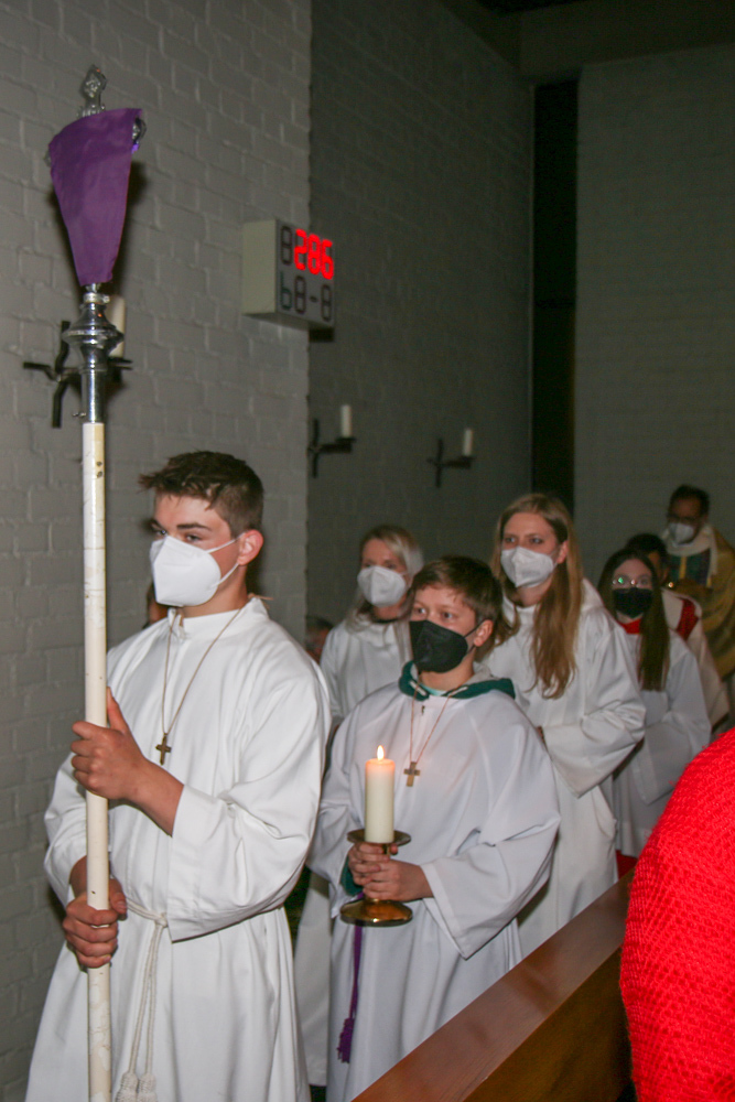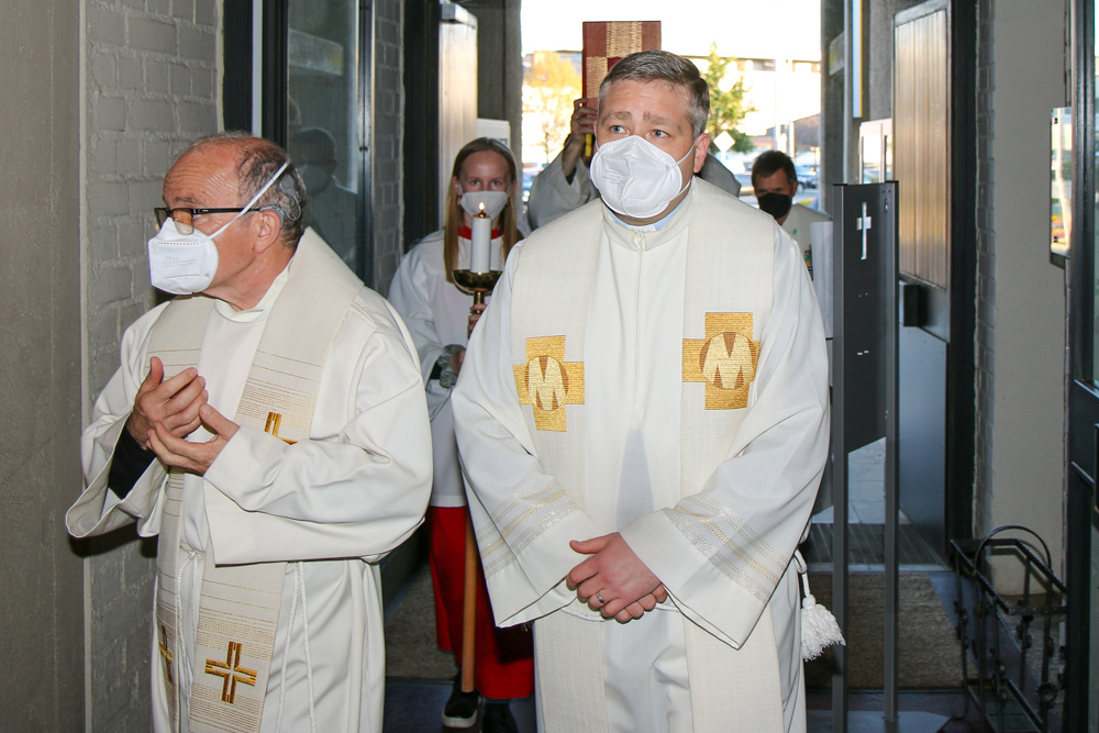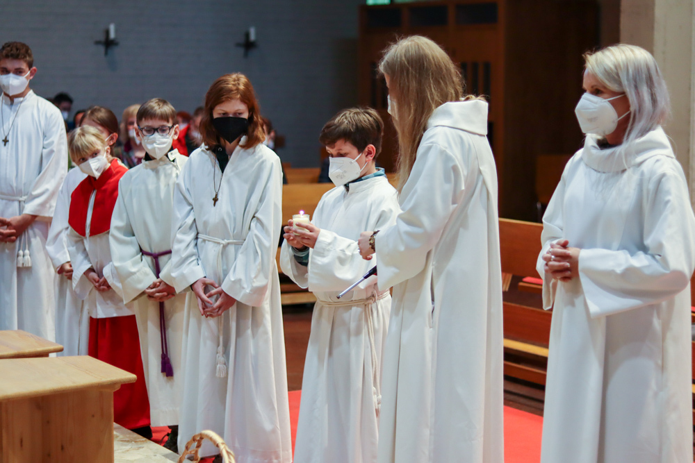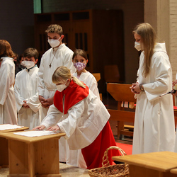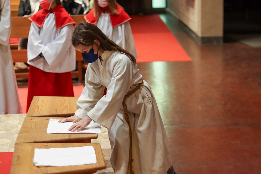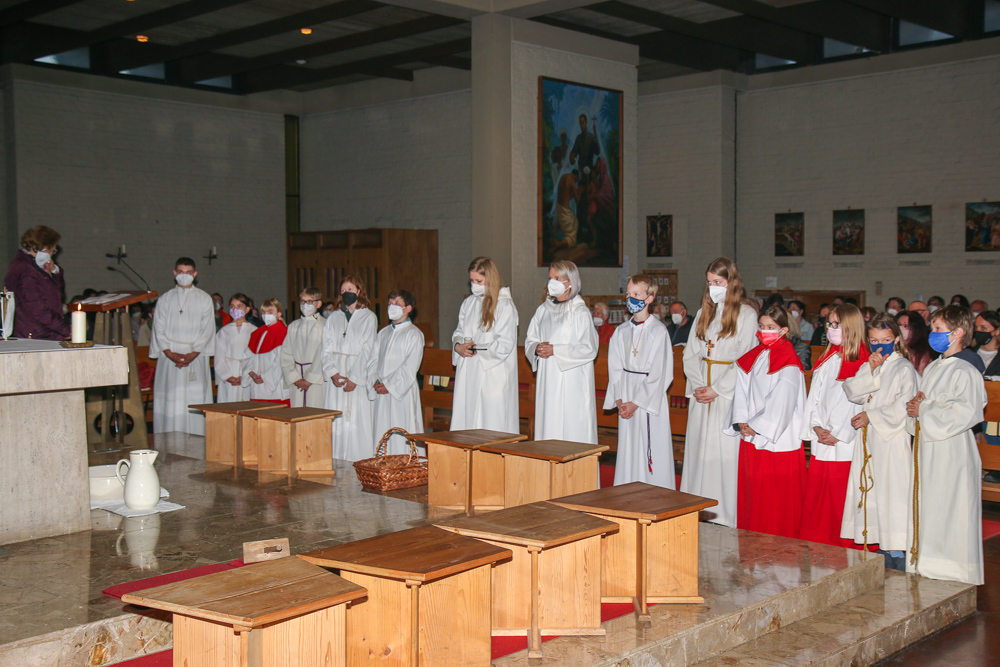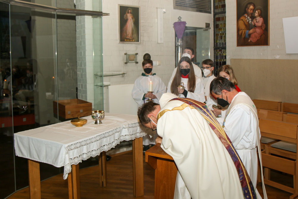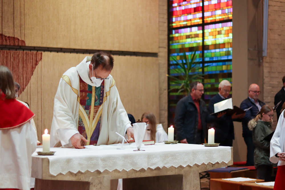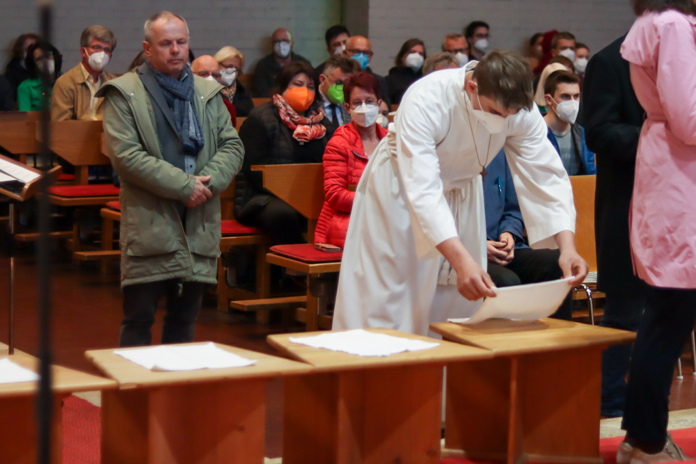 In einer etwas anders gestalteten Fußwaschung wurde jenen gedacht, die nicht oder nicht mehr am Leben der Kirche teilnehmen können oder möchten. Die Stühle blieben leer. Symbolisch für Rand- und Zielgruppen und jene Menschen, die unsere Gesellschaft mitprägen, wurden Kerzen entzündet. Als Zelebranten fungierten unsere drei Priester, drei Diakone sowie alle Pastoralreferentinnen und Referenten, welche den Sendungsauftrag im Seelsorgeraum Kaiserwald erfüllen.