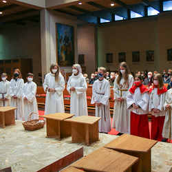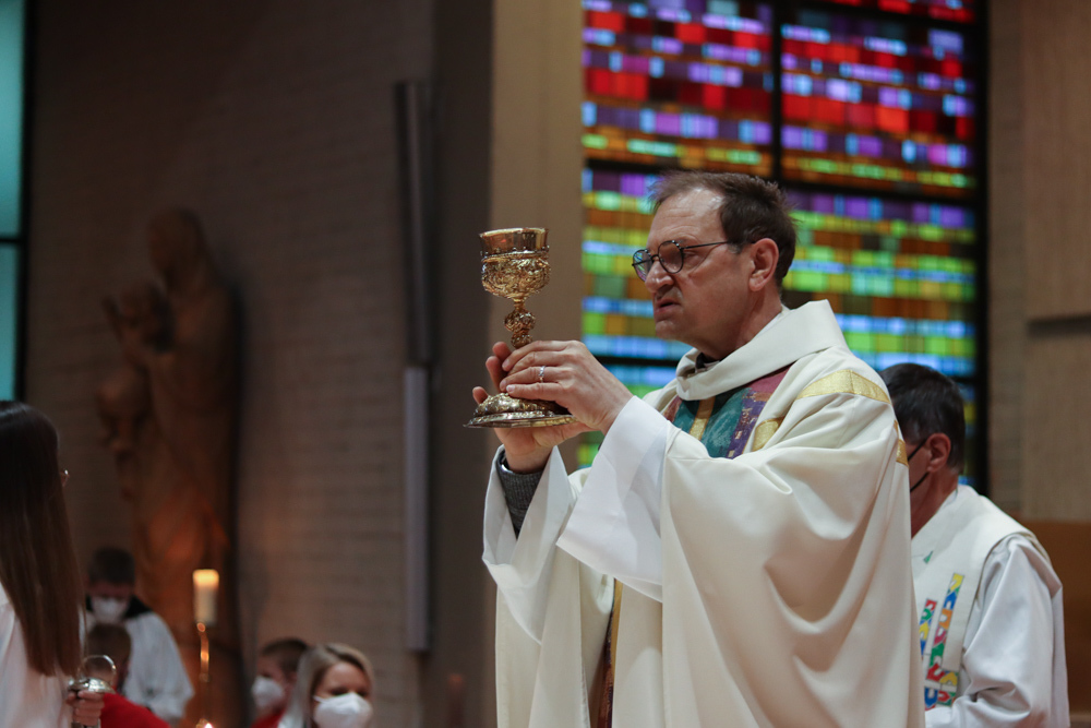 Am Gründonnerstag feierten wir eine gemeinsame Seelsorgeraum-Messe in der Pfarrkirche Lieboch. Mit dabei waren drei Priester, drei Diakone, drei Pastoralreferentinnen, über 20 Ministranten und verschiedene weitere Dienste aus unseren sechs Pfarren.