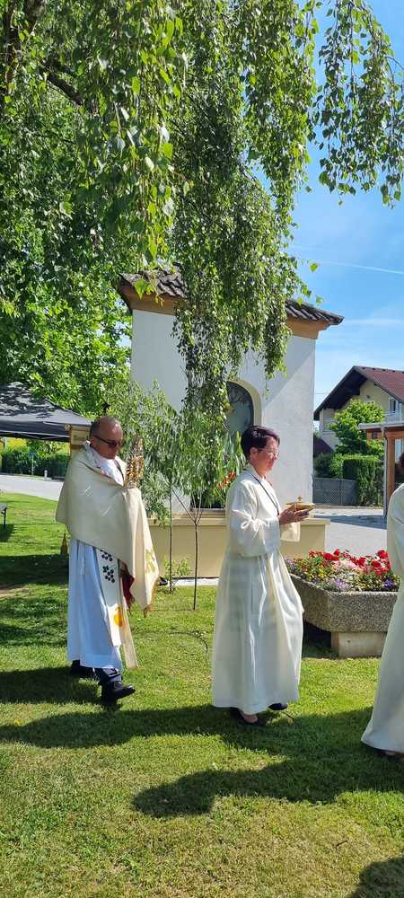 Zu Fronleichnam demonstrieren Katholikinnen und Katholiken ihren Glauben in der Öffentlichkeit. Sie demonstrieren dabei nicht gegen etwas sondern tretenfüretwas ein. Gemeinschaft und Zusammenarbeit zeigten die Pfarren Lieboch und Tobelbad in dieser schönen Feier. Neben den Kindern in ihren Erstkommuniongewändern, waren auch der Kameradschaftsbund und die Feuerwehr mit Abordnungen beider Pfarren vertreten. Vikar Norbert Glaser schloss mit dem eucharistischen Segen für die Kirche.