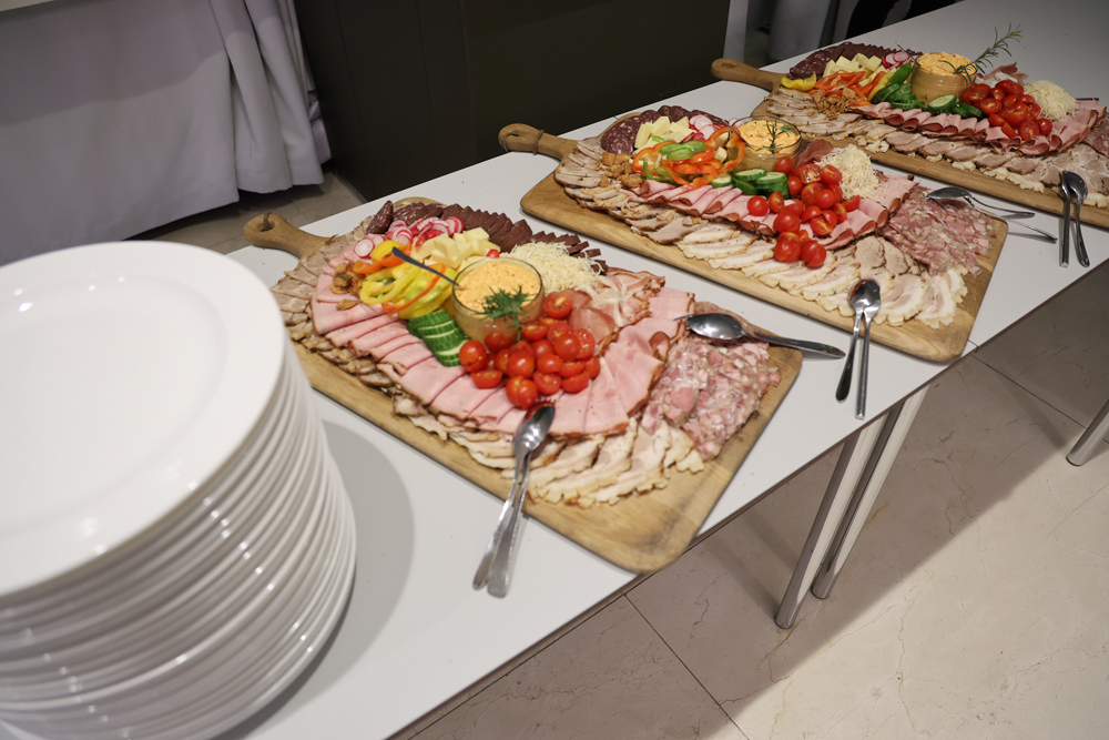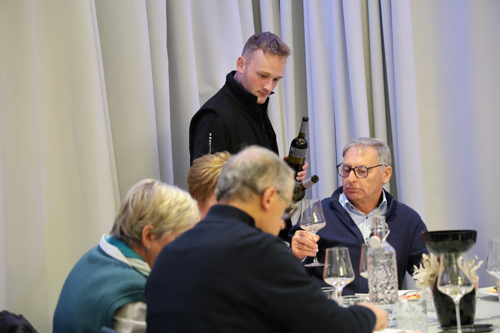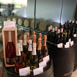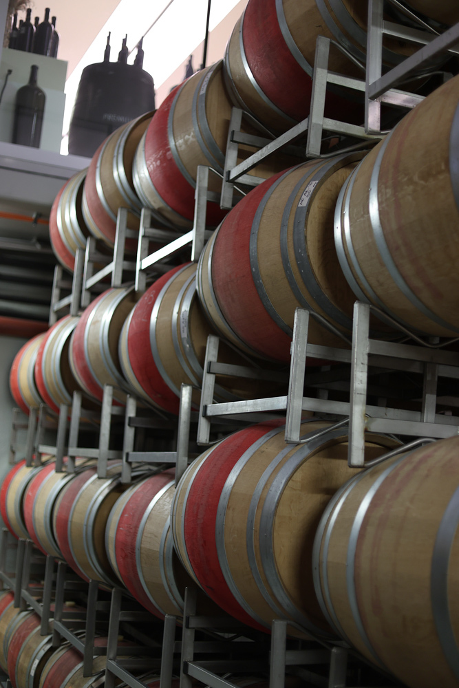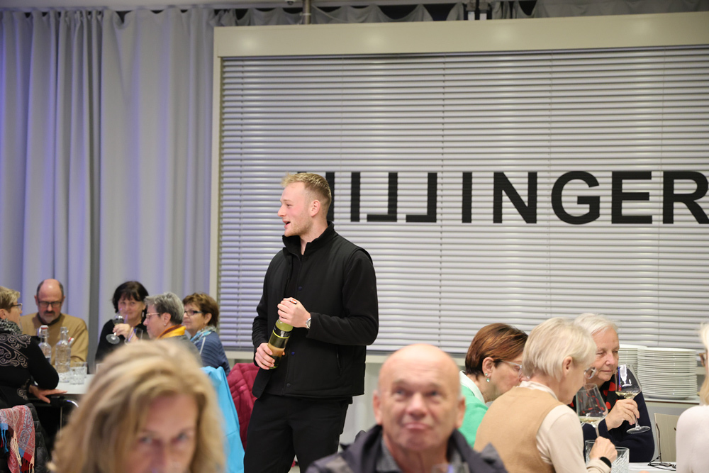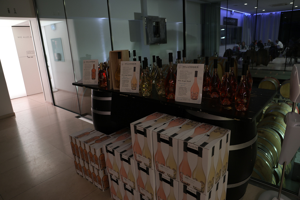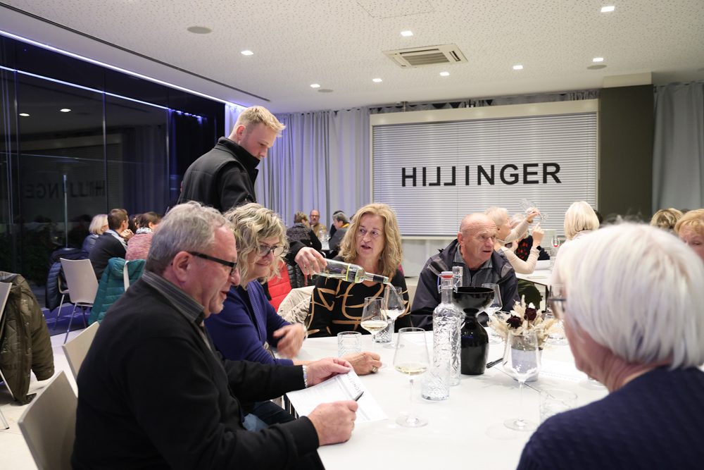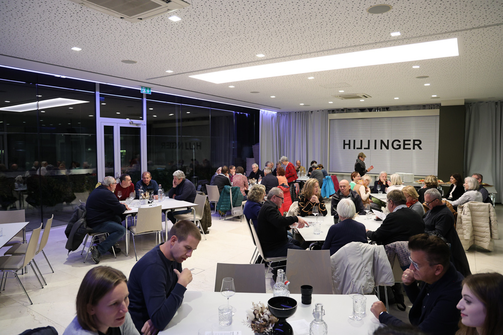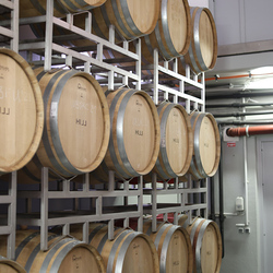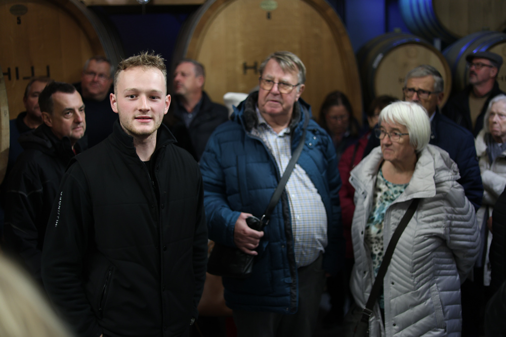 Zum krönenden Abschluss fuhren wir weiter nach Jois im Burgenland zum Weingut Leo Hillinger. Zuerst wurden wir durch den Weinkeller geführt. Zwischen Stahltanks und Barriquefässern konnten wir alle möglichen Fragen zum Wein und Weingut stellen. Im Gebäude darüber konnten wir mit Blick auf den Weinkeller vier Weine verkosten. Zur Stärkung durfte eine Jause dazu nicht fehlen.