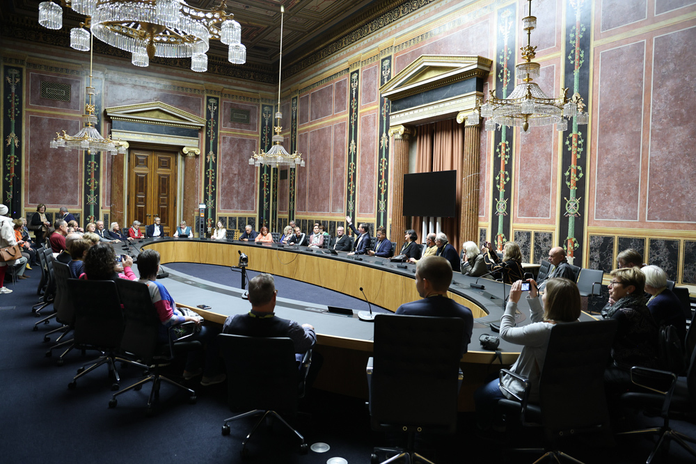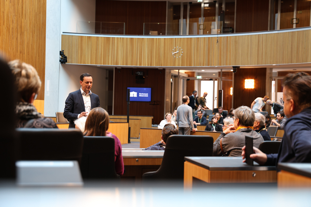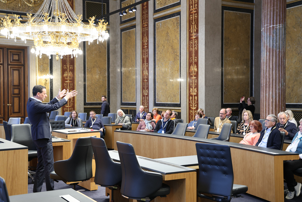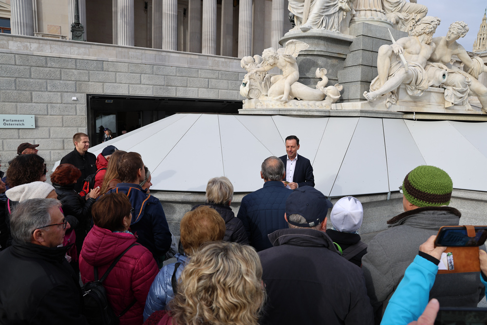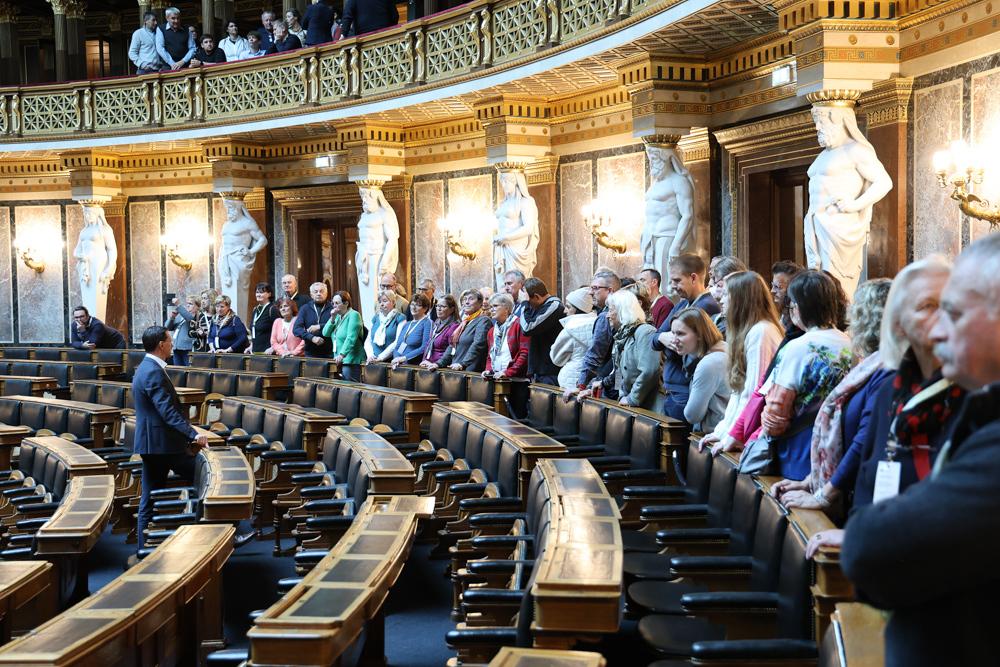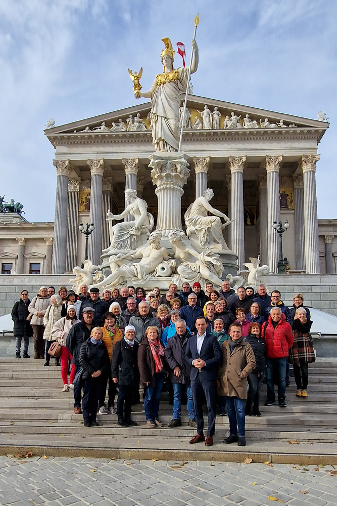 Ganz früh machte sich am 11. November 2023 ein voller 50er-Bus aus dem Seelsorgeraum auf den Weg nach Wien. Dort angekommen empfing uns der in unserem Seelsorgeraum wohnende Nationalratsabgeordnete Ernst Gödl. Er führte uns etwa zweieinhalb Stunden durch das im neuen Glanz erstrahlende, 140 Jahre alte österreichische Parlamentsgebäude und erklärte auch seine Aufgaben und Arbeitsweise als Nationalratsabgeordneter.